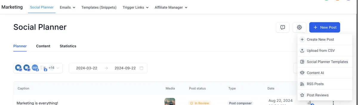 5. Once the post is approved, it will be scheduled in the social calendar. If the post is rejected, the user can view the comment sent by the reviewer.